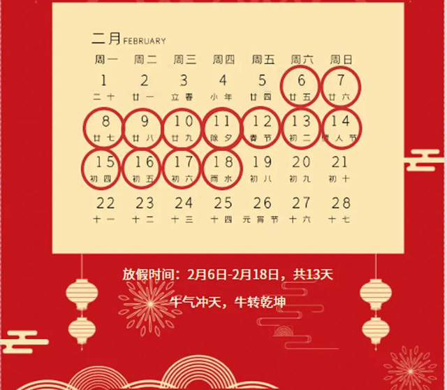 2025年12月15日(臘月(yuè)廿五)至12月15日(rì)(正月初七)放(fang)假,共計13天。