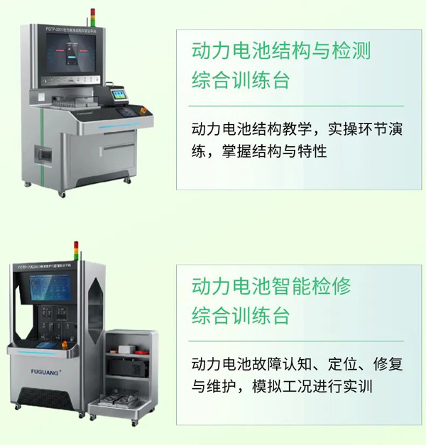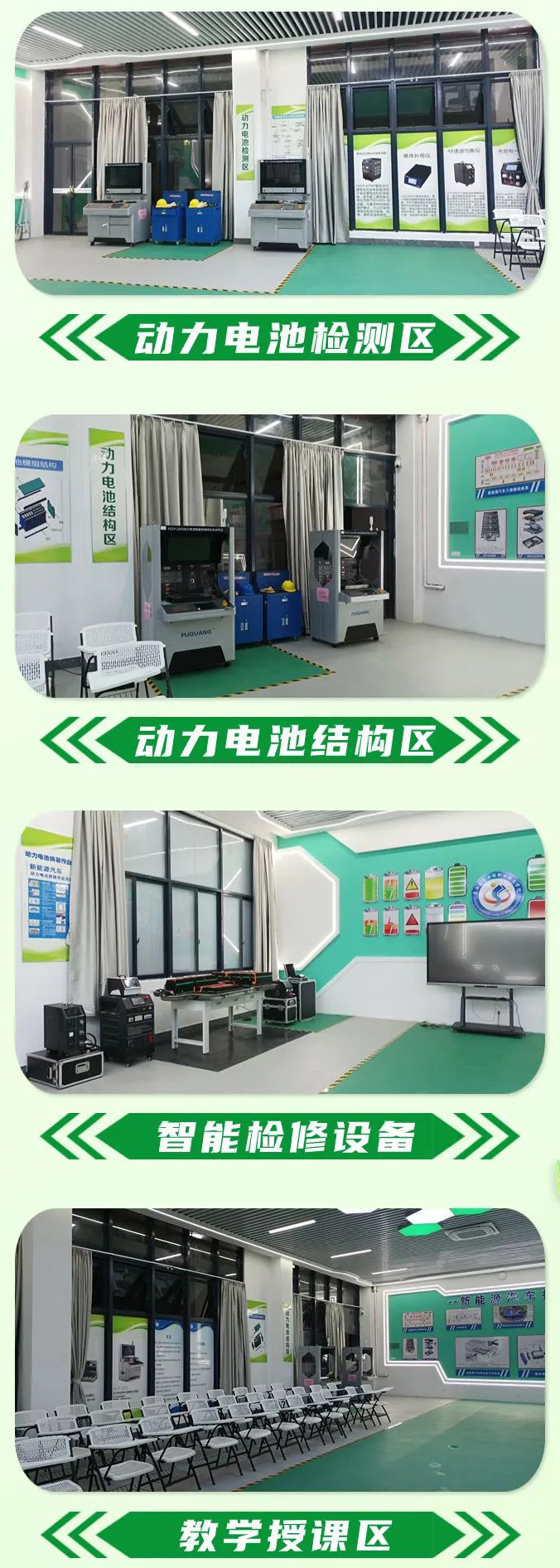 福光(guāng)電子根據新(xin)能源汽車動(dòng)力電池專業(yè)課程體系重(zhòng)構,按專業課(kè)程實施爲導(dao)向建設滿足(zú)新能源汽車(chē)電池檢修全(quan)工序人才培(péi)養一體化的(de)教學實訓室(shi)。