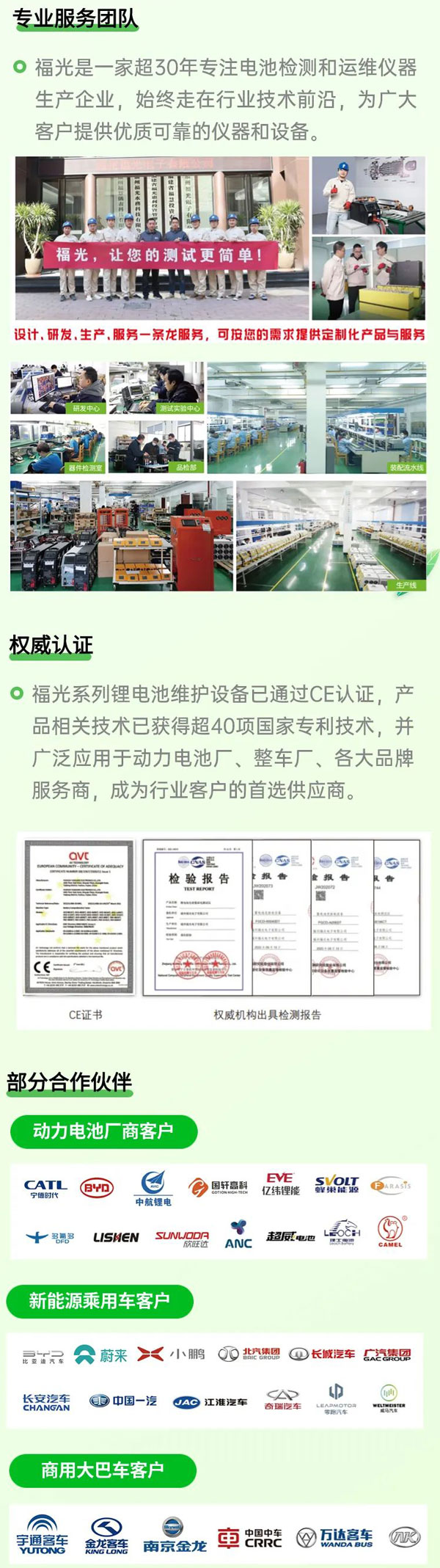 作爲專業的(de)锂電池運維(wei)檢測儀器與(yu)設備制造商(shang),福光電子依(yi)托自身新能(néng)源汽車動力(lì)電池檢修設(she)備産業的技(jì)術優勢和對(duì)産業的深刻(ke)理解,按動力(li)電池結構、檢(jiǎn)測、智能檢修(xiu)等各項測試(shì)全工序,打造(zào)集動力電池(chi)教學、科研、培(péi)訓、社會服務(wu)爲一體的人(rén)才培養創新(xīn)平台,進一步(bu)将産學研融(róng)爲一體,取得(dé)互利共赢的(de)豐碩成果。