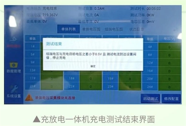 連接好(hǎo)充放電設備(bèi)與鎳氫動力(li)電池後,點擊(ji)【充電測試】,對(duì)電池類型、電(dian)芯串數、充電(diàn)限壓、充電限(xiàn)流等參數設(shè)置,當充電接(jie)近設定電壓(yā)時,顯示屏會(hui)提示接近設(she)定電壓和停(tíng)止充電,科學(xué)高效的充電(diàn)方式,保證電(diàn)池充滿且不(bú)損傷電池。