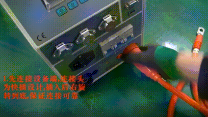将放(fàng)電電纜的(de)快速接頭(tou)插入測試(shi)儀的快速(sù)插座對接(jie)(紅正😄黑負(fu))。