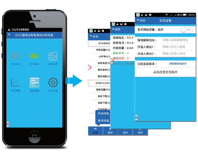 通過增(zēng)配手機端(duan)控制功能(neng),不僅能實(shí)現APP端對放(fàng)電測🎯試設(she)置與💁操作(zuo),也可實時(shí)查看充放(fang)電過程中(zhong)的單體電(dian)壓👌,組端電(diàn)壓以及放(fàng)電電流等(deng)參數,生産(chǎn)分析報表(biao)等。提升放(fang)電測☀️試的(de)可操作性(xìng)與便捷性(xing)。