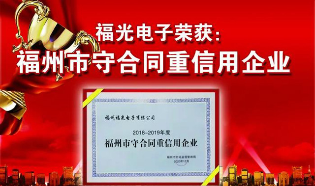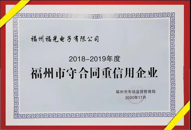 近日,福州福光電(dian)子有限公司收到(dao)由福州市市場監(jiān)督管理局頒發“福(fú)州市守合同重信(xin)用企業”的榮譽稱(cheng)💋号。