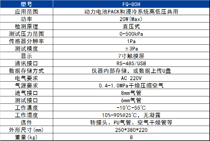 FQ-80H 氣密測(ce)試儀(高(gao)壓)是福(fú)光電子(zǐ)針對新(xīn)能源行(háng)業推出(chū)的一款(kuan)🚶♀️高精度(dù)無損檢(jiǎn)測設備(bei),具有業(ye)界最高(gāo)的靈敏(mǐn)🐅度和穩(wen)定性。該(gai)設備💃主(zhu)要運用(yòng)壓縮空(kōng)氣爲介(jiè)質,通過(guo)✏️檢測産(chǎn)♊品内部(bu)或密閉(bì)腔體内(nèi)壓力微(wei)量變化(hua),判斷待(dài)測試産(chǎn)品的密(mi)封性🍓。具(jù)備使用(yòng)💜方便快(kuai)捷🈲、檢測(ce)成本低(dī)💔、對環境(jìng) 及被測(ce)對象無(wú)污染等(deng)諸多優(yōu)點,有效(xiao)提升新(xin)能源行(háng)業客戶(hù)💞的檢測(ce)效率與(yǔ)産品質(zhì)量。