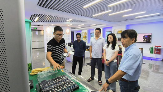 在生(sheng)産研發中(zhōng)心和工作(zuo)流程的參(can)觀中,福 光(guang)電子團隊(dui)向泰國客(kè)戶介紹了(le)多種不同(tóng)的新能 源(yuán)電池檢測(cè)設備,不僅(jin)對産品特(te)點和參數(shù)進行 講解(jie),還逐一進(jìn)行現場接(jie)線操作,讓(rang)客戶更深(shen) 入地了解(jie)了産品的(de)細節與特(tè)點。客戶也(ye)對福光 良(liáng)好的工作(zuò)環境、有序(xu)的生産流(liu)程,嚴格的(de)質 量控制(zhì)留下了深(shēn)刻的印象(xiang)。