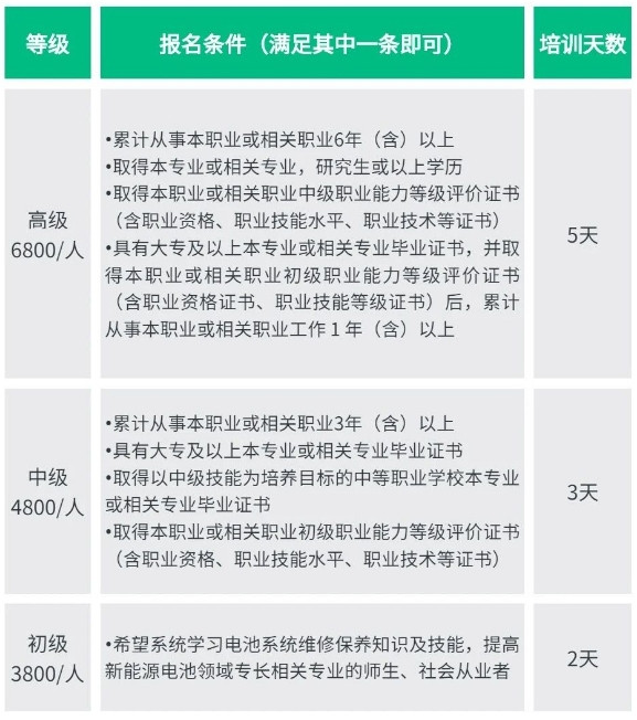 “電池維修保養”(初(chū)、中、高級)職業技術(shù)證書,爲新能源
