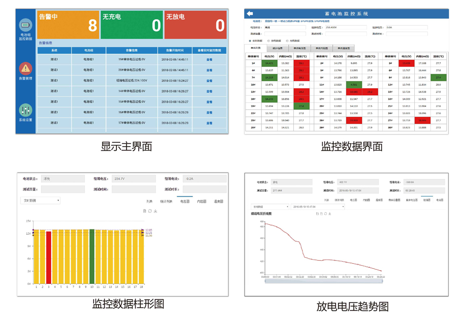 息實時(shi)顯示、曆史監(jian)控數據記錄(lù)、曆史充放電(diàn)數據‼️存儲、蓄(xu)🌈 電池性能分(fèn)析、趨勢分析(xi)、統計分析、專(zhuan)業報表等功(gōng)能
