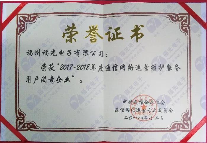 12月20-21日,福州(zhōu)福光電子(zi)有限公司(si)受邀參加(jia)由中國通(tong)信企業協(xie)會指導,中(zhōng)國通信企(qi)業協會通(tong)信網絡運(yun)營專業委(wěi)員會主辦(bàn)的2018年中國(guó)通信網絡(luò)運營維護(hù)服務年會(hui),會議同期(qi)榮獲 “2017-2018年度(dù)通信網絡(luò)運營維護(hù)服務用戶(hu)滿意企業(yè)”稱号,連續(xu)多年獲得(dé)中國通信(xin)企業協會(hui)授予的“用(yong)㊙️戶滿意企(qi)業🈲”殊榮。
