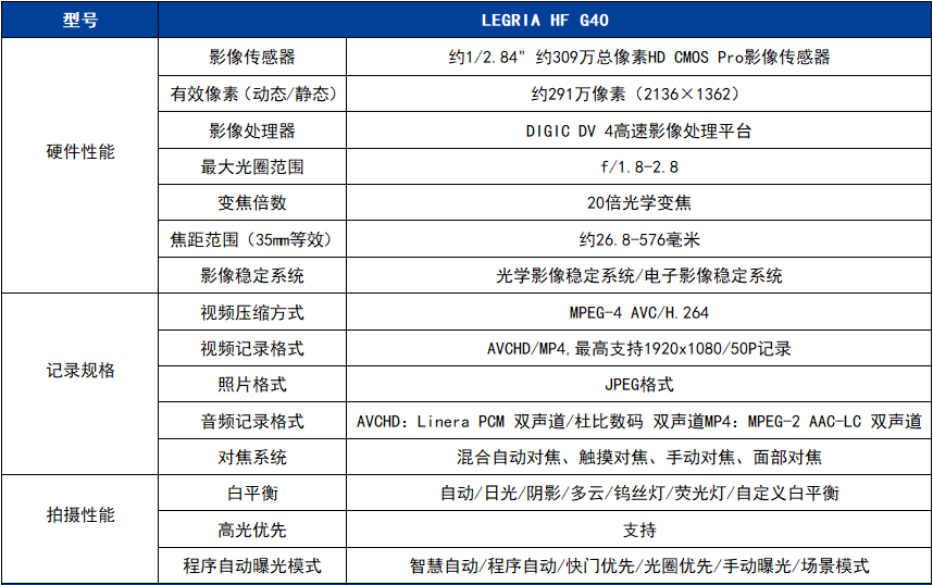 LEGRIA HF G40 采用了(le)與專業級(ji)攝像機相(xiàng)同的攝像(xiàng)鏡頭、影像(xiàng)傳感🚩器、影(yǐng)🔆像處理器(qi)三大主要(yào)成像元件(jiàn);并搭載了(le)源自專❗業(yè)攝像機的(de)伽馬曲線(xiàn)設置,讓用(yòng)戶能體驗(yàn)到專業級(ji)産品的高(gao)畫質。