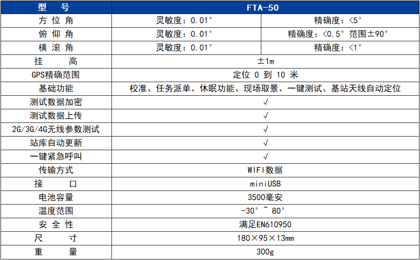 ● 測量高(gāo)效、簡便性(xing):以電子化(huà)方式單手(shou)操作一鍵(jiàn)測試、自動(dong)存✌️儲、一鍵(jiàn)上傳、數據(ju)同步一次(cì)性記錄方(fang)位角、挂高(gao)、 經🐪緯度、無(wú)線⭐參數等(deng)