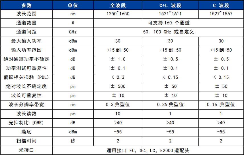 ● S, C 和 C+L 波(bo)段的波長範(fàn)圍技術參數